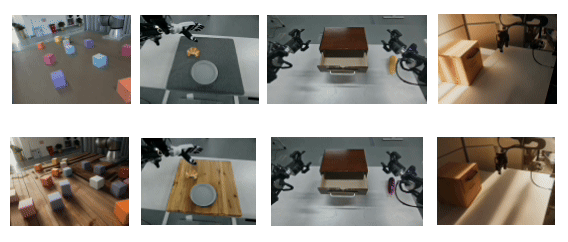 系统可在虚拟空间中完成 “想象 → 生成 → 再标注 → 迁移” 的自循环过程。首先从少量真实交互样本出发,自动合成成千上万条物理一致的视觉 - 动作数据,然后通过多模态控制,实现不同任务类型、环境风格与相机视角的多样化生成。并且这种生成支持视觉风格迁移与 VLA 数据同步合成,从而提升策略学习与视觉推理的泛化能力。