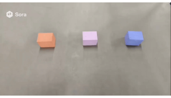 Sora 2 生成依次抓取火方块,柔性方块,水方块
