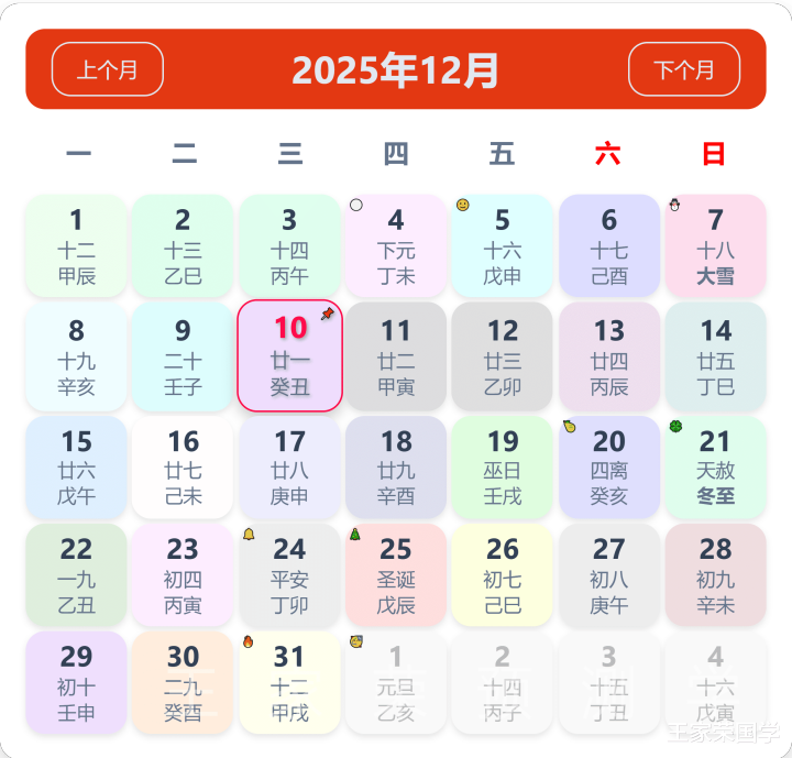 老黄历看日子生肖运势查询(2025年12月10日)