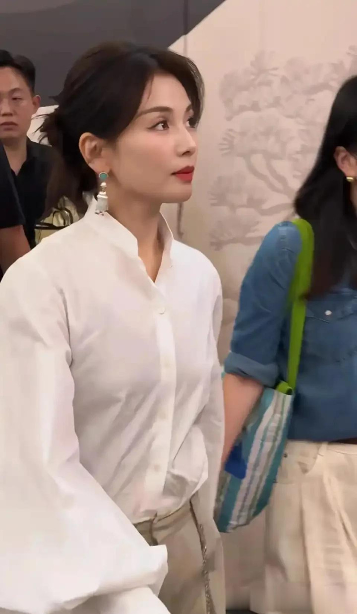 被刘涛“生图状态”惊艳到! 国泰民安脸穿白衬衫阔腿裤, 美的大气