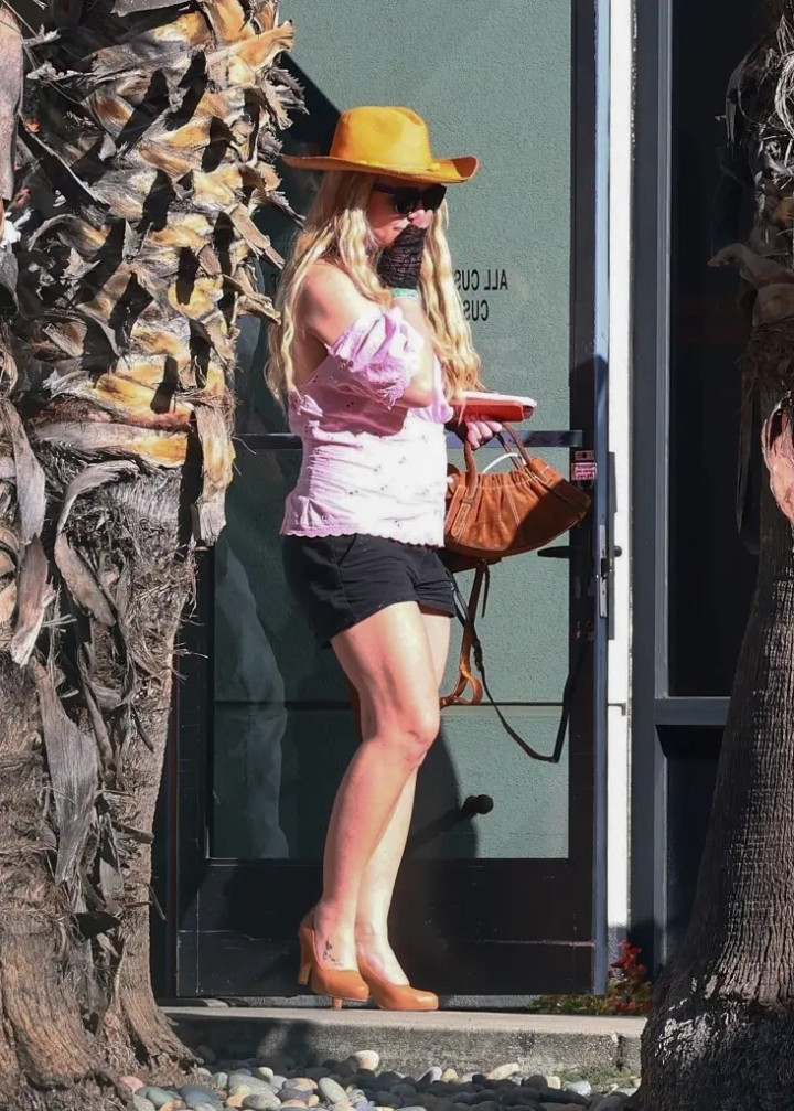 当天,布兰妮留着一头漂亮的金发,但因穿了一件十分松垮的灰绿色连衣裙,再随意搭配了一双灰色的拖鞋,而看上去有些邋遢。
