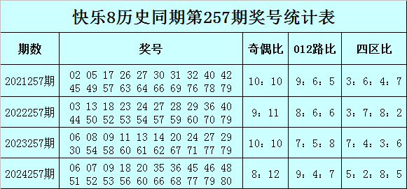 快乐8历史同期第257期号码分析